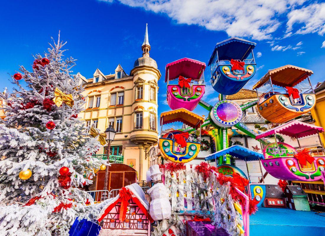Varázslatos karácsonyi hangulat Nizzában: A Place Masséna és a Promenade des Anglais ünnepi fényárban úszik, több mint 188 000 méter fényfüzérrel és közel 5 millió fényponttal díszítve. Karácsonyi vásár és vidámpark is várja a látogatókat a város több pontján.