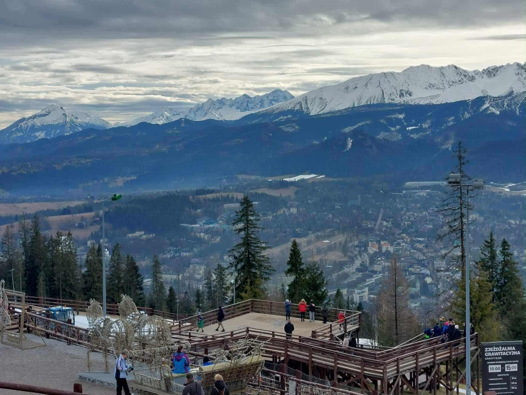 A Gubalowka-hegyről a Lengyel-Tátra vonulata és az alatta elterülő kis városka panorámája is csodálatos.