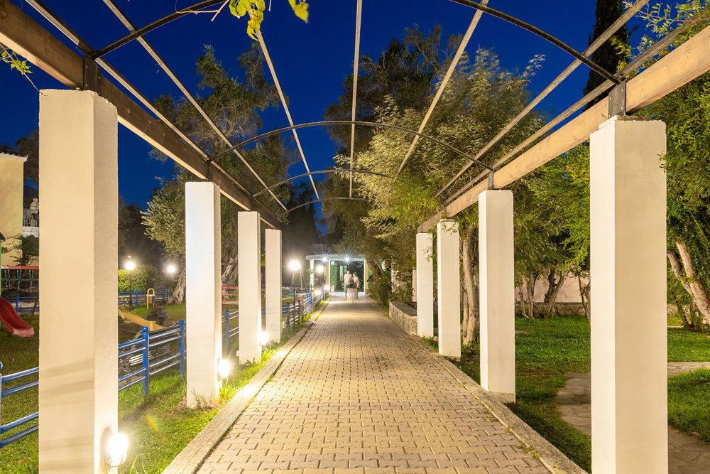 Fekvése: Messonghi a sziget fővárosától 27 km-re, délre fekvő, Moraitikával szinte összenőtt (a két üdülőhelyet egy kis folyó választja el egymástól), hangulatos üdülőhely. Homokos helyenként aprókavicsos tengerpartja egy védett, gyönyörű öbölben húzódik meg. Több üzlet, szupermarket, taverna, bár található, azonban mozgalmasabb éjszakai életet inkább Moraitikán találhatunk ahová egy kellemes esti séta során percek alatt eljuthatunk. A Sentido Apollo Palace Hotel hatalmas, 50 hektáros mediterrán kerttel rendelkező, igazi mediterrán stílusban épült, több tucat bungalóépületből álló hotelkomplexum. A szálloda Messonghi folyó mellett található, a tengerparttól és a szálloda privát strandjától (a part homokos, a tenger aprókavicsos) mindössze 50 m-re van. A szálloda közelében lévő buszmegállóból könnyedén eljuthatunk a környező üdülőhelyekre. Az üdülőhely központja kb. 200 m.